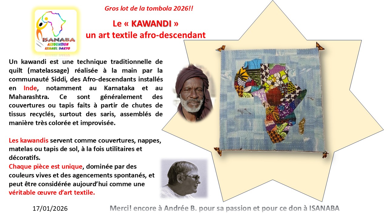 3) Une animation prestation de conteuses et un percussionniste, une tombola (un lot spécial « Kawandi » offert cette année encore par Andrée)